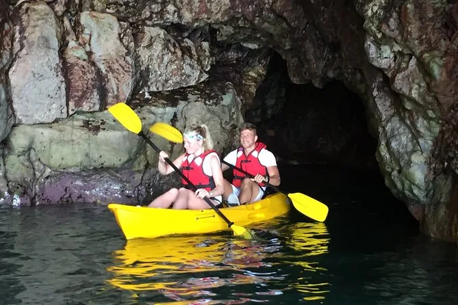 You’ll kayak along Denia’s coast with a local guide, explore Cova Tallada by lantern (watch your step!), then snack before snorkeling in bright blue pools outside the cave entrance. Expect clear water, cool stories about smugglers and quarrymen, and a few quiet moments you might remember longer than you think.