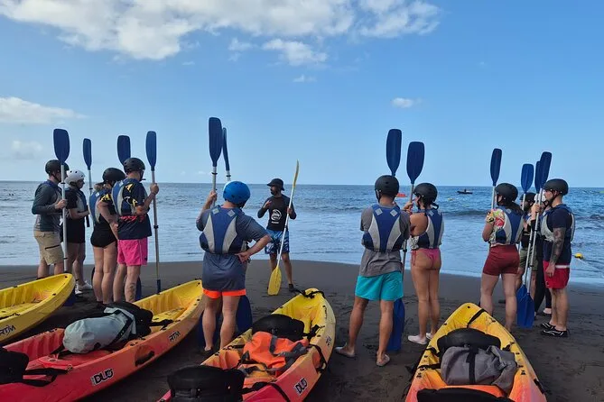 Your day covers all safety equipment including helmet and life vest, use of a two-seat kayak plus comfortable seats, snorkeling gear for exploring volcanic reefs, tasty snacks during breaks (trust me—they hit different after paddling), plus digital photos and videos captured by your guide so you don’t have to risk your phone near saltwater. Watershoes rental is also an option if you want extra grip scrambling over rocks.