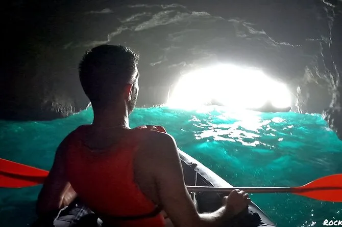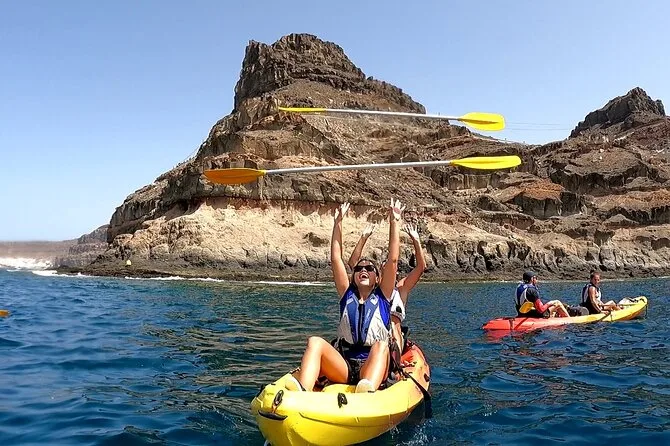 Gran Canaria kayaking caves route with snorkeling and cliff jumps