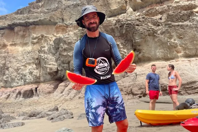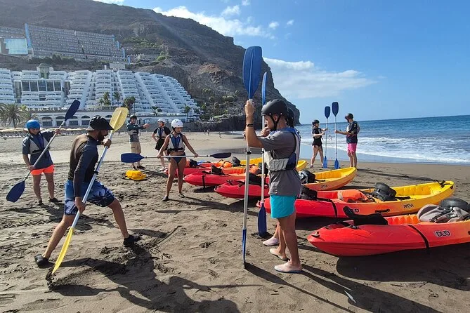 You’ll paddle through ocean-carved caves along Gran Canaria’s cliffs, guided by locals who know every current and shadow. Cliff jumping is optional but cheering counts too. Snorkeling reveals volcanic reefs teeming with life—and there’s time for snacks and laughter between adventures. Expect salt on your skin and stories you’ll want to tell later.