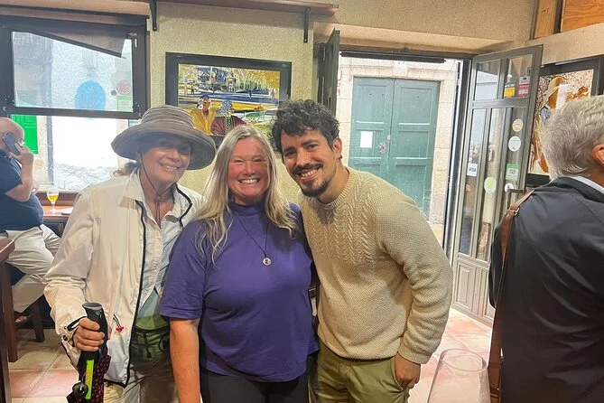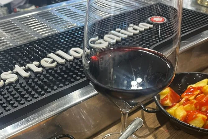 By the last stop, there was live music drifting from somewhere behind the counter — guitar and someone singing in Galician, which sounded softer than Spanish somehow. We had our third drink (I went for wine this time) and just sat back listening for a bit. I kept thinking how different everything tasted here; even the bread had this chewy crust you don’t get back home. The whole night felt kind of loose around the edges — people coming and going, stories overlapping with snacks and sips. It didn’t really feel like a tour after a while… more like being invited along on someone else’s evening out.