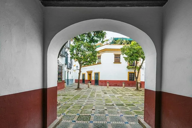 You’ll visit Santa Cruz neighborhood, Royal Alcazar (with skip-the-line entry), Seville Cathedral (panoramic view), and parts of historic central Seville.