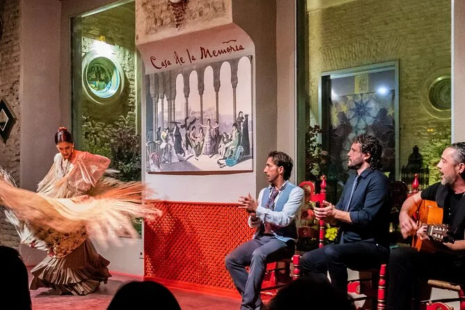 You’ll slip into Seville’s Casa de la Memoria for an hour of pure flamenco—no microphones or distractions—just close-up music and dance in a centuries-old palace. Feel every stomp and chord echo through the intimate theater as local artists perform right in front of you. You’ll leave with that rhythm still pulsing somewhere inside.