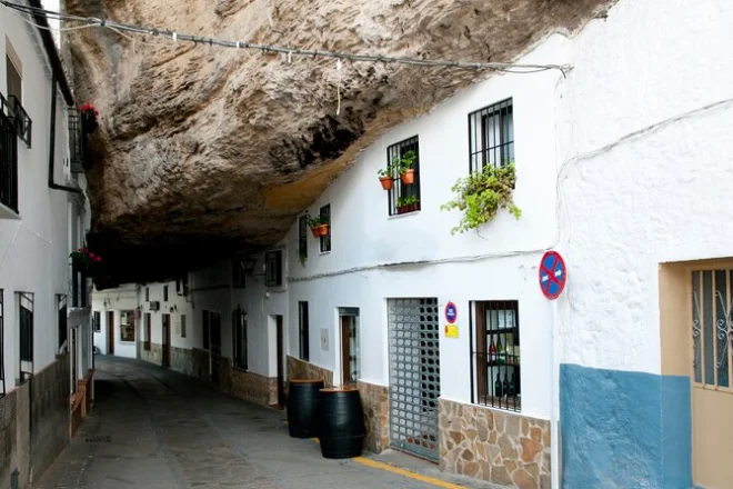 Setenil was next, and it’s hard to explain until you see it: whole houses built right under these massive rocks, like nature just decided to drop a roof for them. Carmen pointed out her favorite bakery wedged into the stone — we stopped for little almond cakes. I tried asking for them in Spanish (“pastel de almendra?”), and the baker grinned at my accent. It was cool in the shade under those cliffs, even though outside the sun was sharp and bright.