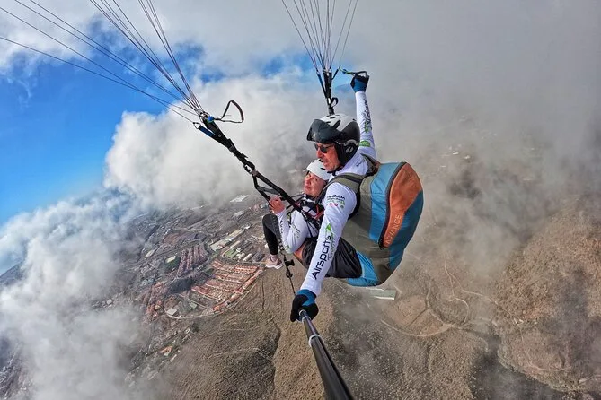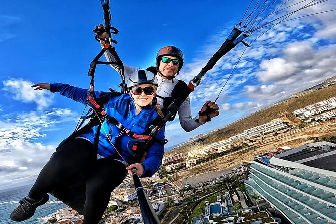 Your day includes free pickup within Costa Adeje, all necessary paragliding gear like harness and helmet, liability insurance, transport in an air-conditioned vehicle up to takeoff, plus guidance from experienced instructors throughout your tandem flight experience.