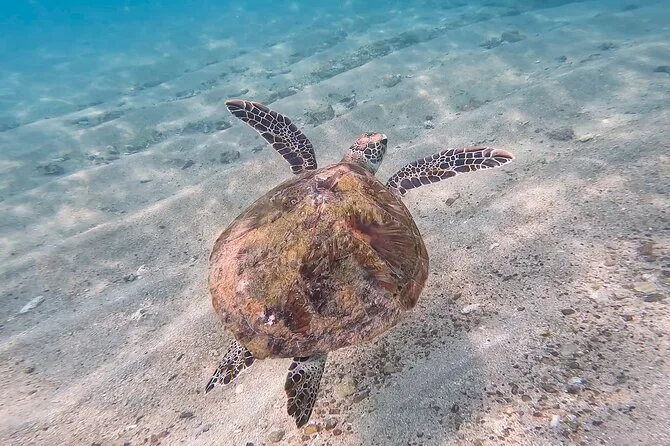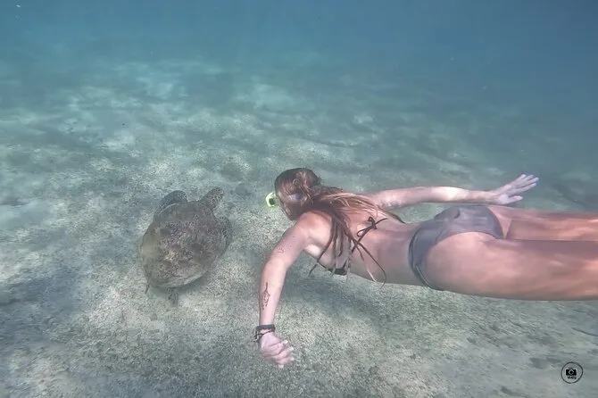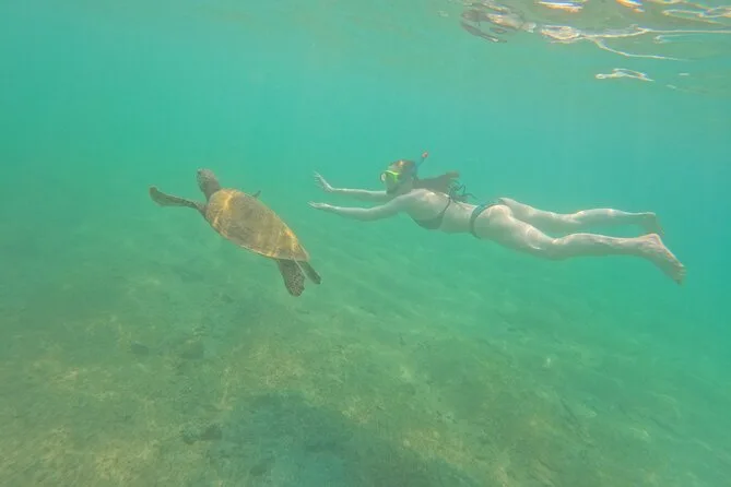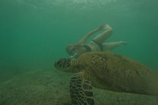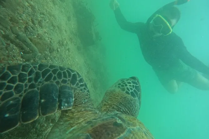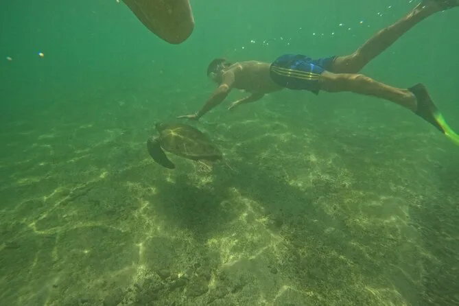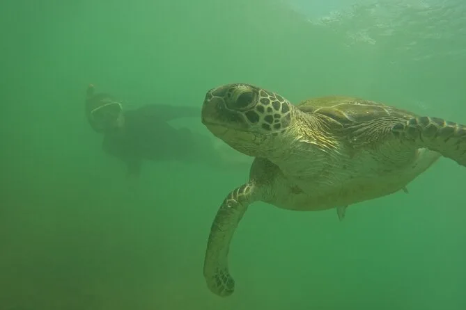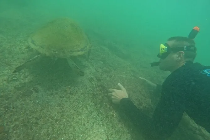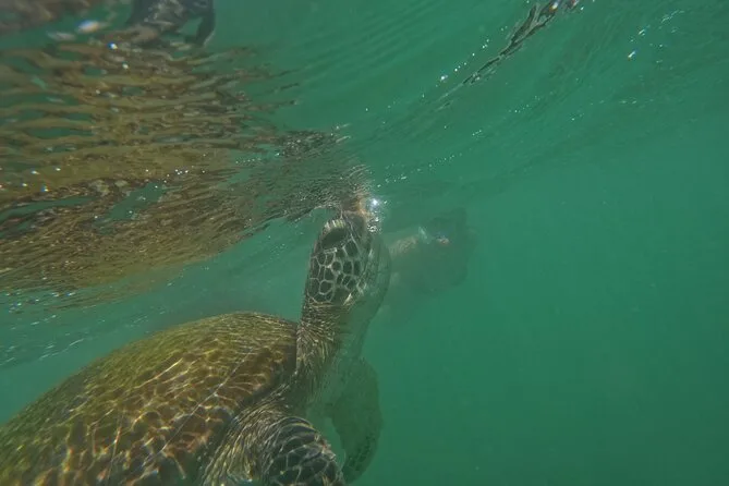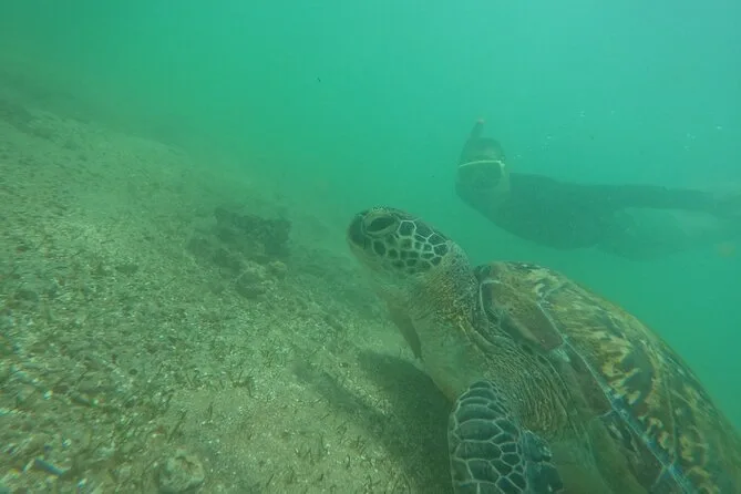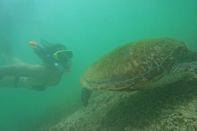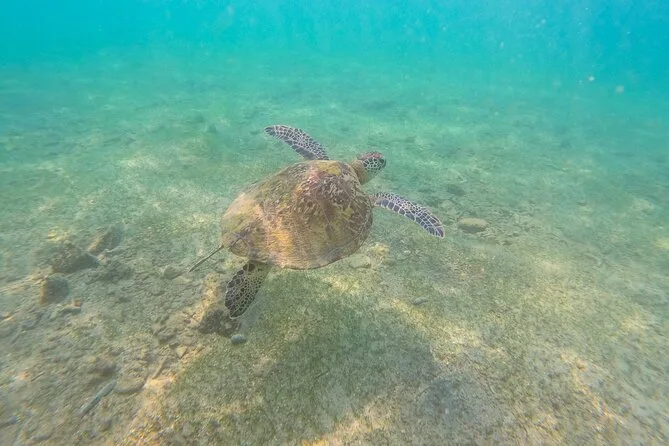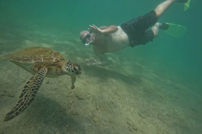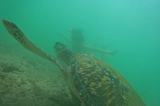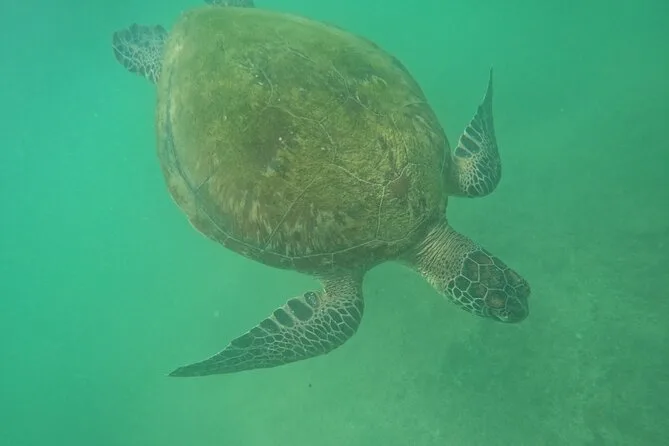 The first time my face went under, everything changed. It got quiet except for my own awkward breathing and this weird echo from the waves above. Suddenly there were these greenish-brown shapes moving slow — turtles, just hanging out like it was nothing special. One swam so close I could see its shell scratched up from years in the sea. The water tasted a bit metallic but not bad, and sometimes I’d pop up just to laugh because honestly? I couldn’t believe how close we were. Fish darted around too — flashes of yellow and blue — but it’s those turtles that stay with me.