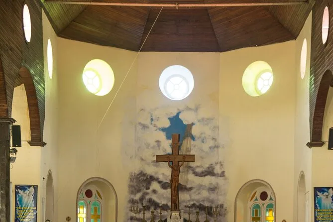 Anse La Raye felt like a different rhythm entirely. We stopped for a bathroom break, but Marcus insisted we peek inside the old church—blue paint peeling in places, sunlight slanting through high windows. There were a few locals chatting outside; one woman waved as we passed by, her hands dusted with flour. The beach was close enough to smell salt and see fishermen sorting their nets right on the sand. Someone tried to sell us handmade bracelets (I bought one—couldn’t help it). It all felt easygoing, not rushed.