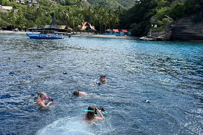 Your day includes hotel or port pickup (from Castries terminal, Rodney Bay Marina or Pigeon Island), all snorkel gear so you don’t have to pack your own mask or fins, bottled water plus local beer and rum for refreshment breaks between swims—then drop-off back where you started before your ship leaves or your evening plans begin.