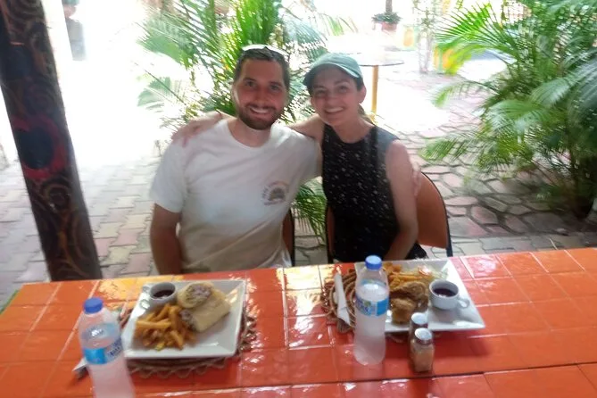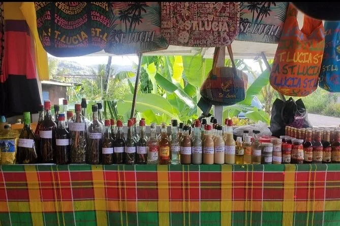 Bottled water, soft drinks like Coca Cola and Sprite, plus locally made Piton Beer are provided. You’ll also sample local sauces at one stop.