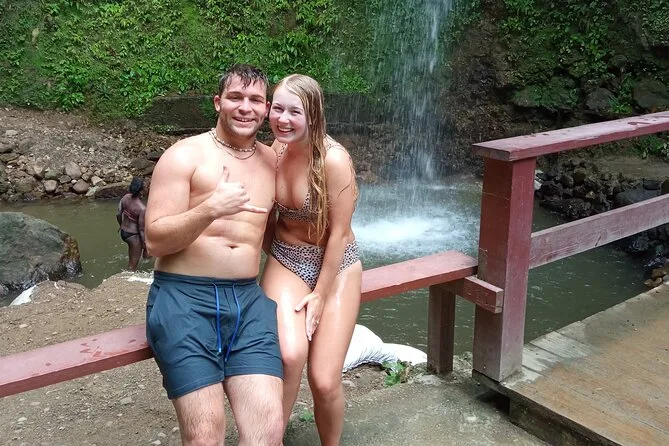 Your day includes private air-conditioned transportation with pickup from your hotel or cruise port (baby seats available), entry fees for both La Soufrière Volcano Mud Bath and Toraille Waterfall experiences, bottled water and soft drinks like Sprite or ginger ale along the way plus a cold Piton beer to finish things off before heading back home together.