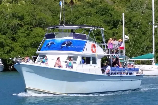 Your day includes guidance from a local marine expert throughout your whale and dolphin watching cruise in St Lucia. Complimentary bottled water, soft drinks, and rum punch are served onboard while you search for marine mammals along the island’s west coast before returning after about three and a half hours at sea.