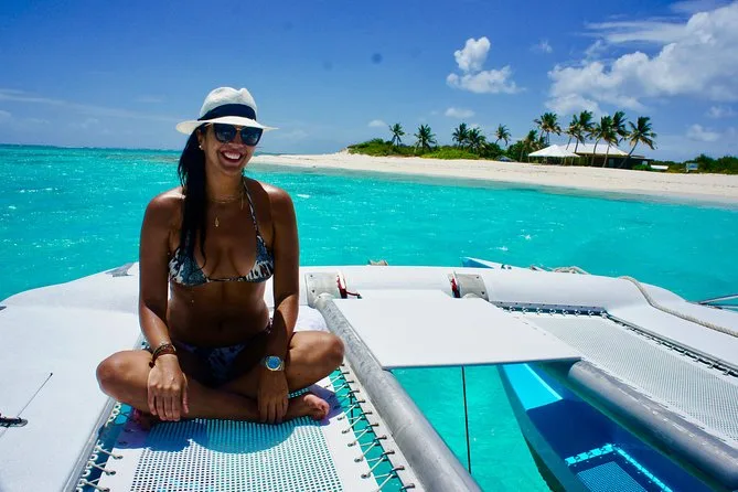 The tour is a full-day catamaran trip around Anguilla’s beaches and cays; exact timing may vary based on sea conditions.