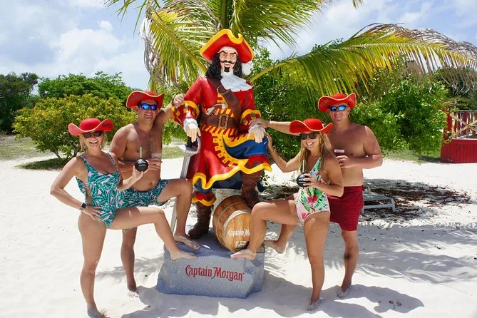 Your day includes use of snorkel equipment at every stop—Little Bay’s turtle cove through Shoal Bay’s reefs—plus paddle boards and floating mats if you want them. There’s an open bar serving hand-shaken cocktails along with sodas or juice anytime you want to grab one. Lunch is served fresh onboard: jerk chicken skewers, garlic shrimp skewers hot off the grill, Greek pasta salad tossed with feta cheese and zesty dressing—and always plenty of bread. There’s fruit platters when you need something light between swims. Life jackets are available in all sizes for safety; restrooms are onboard too so you’re never uncomfortable out at sea.