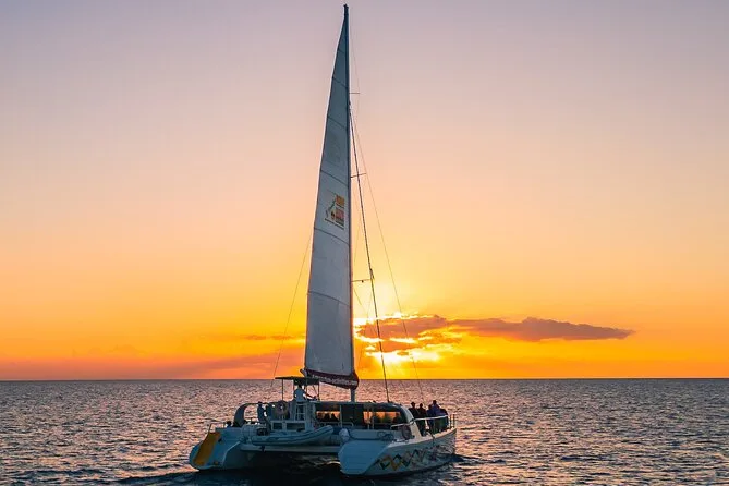 Your evening includes boarding a 65-foot sail catamaran at Simpson Bay Resort marina, full open bar service with snacks as you sail St. Maarten’s coastline at sunset, followed by a Creole buffet style dinner served on board—all hosted by a professional local crew before returning to shore later that night.