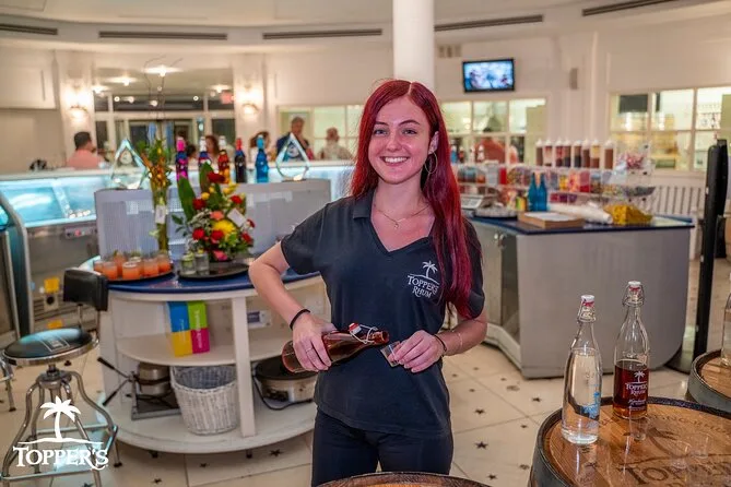 Your visit includes a welcome rhum punch on arrival at Simpson Bay Lagoon, an interactive guided tour through Topper’s distillery with plenty of stories along the way, exclusive tastings of more than 15 specialty rums plus signature blends, samples of rum-infused gelato and cake, opportunities to join as guest chef or bartender for fun hands-on moments — all wrapped up with time to relax at their bar or browse the gift shop before heading out again.