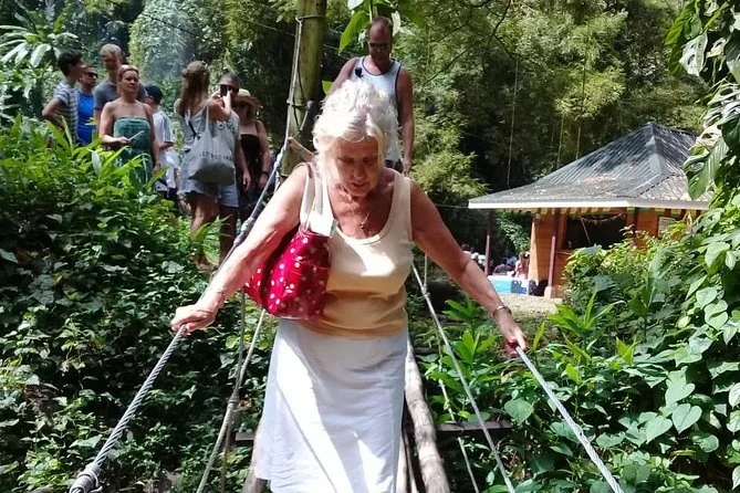 You’ll get to cross a bamboo bridge into real rainforest, cool off in waterfall pools, and see both black and white sand beaches—all with a local guide who knows every shortcut and story along the way.