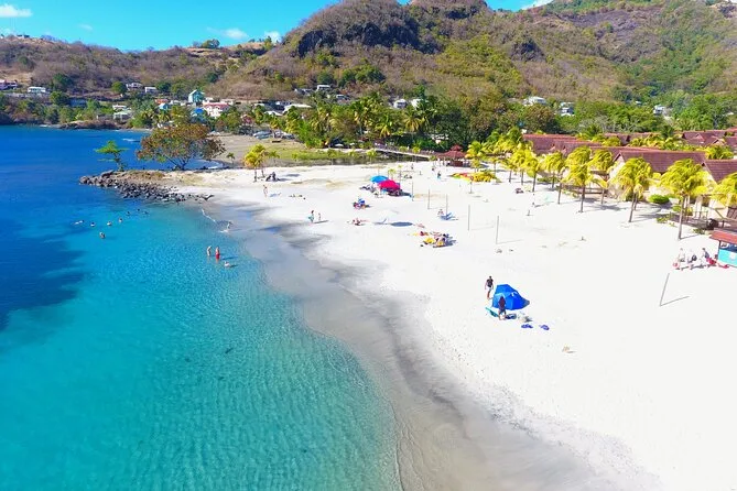 You’ll walk through real Pirates of the Caribbean sets, cross a bamboo bridge to stand under Dark View Falls, and relax on Buccament Bay’s beaches—all with local stories and flavors along the way.