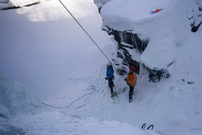 All ice climbing gear is included: alpine boots, crampons, harness, helmet.