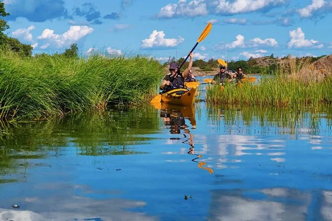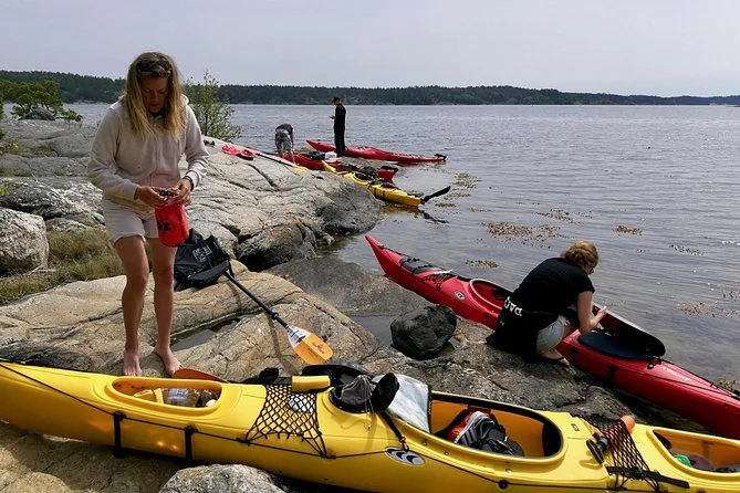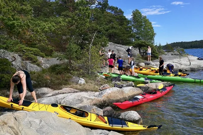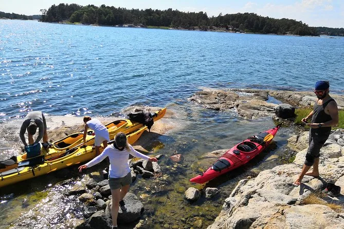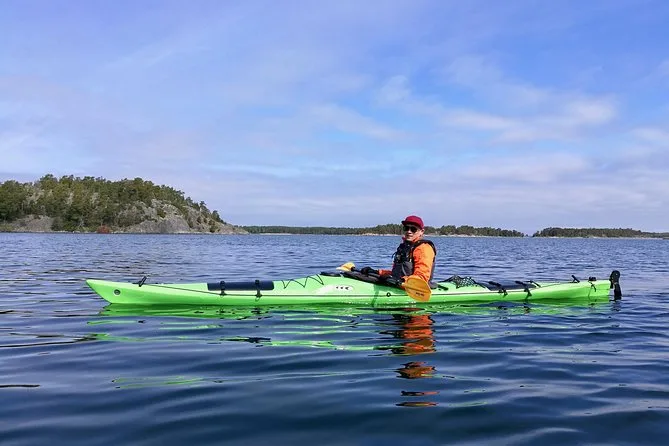 Your day includes pickup from south Stockholm by air-conditioned vehicle, all kayak equipment (with safety gear), drybags for your things, an introduction course before paddling out among the islands with your guide, plus an outdoor lunch and classic Swedish fika shared on a quiet island before heading back together in the afternoon.