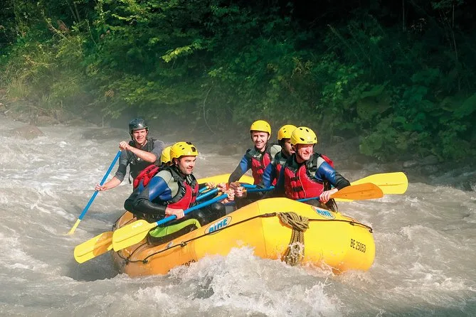 You’ll paddle wild rapids beneath the Eiger’s shadow with expert guides, feeling every splash and shout echo through the valley. After conquering Lütschine’s whitewater, you’ll drift onto Lake Brienz’s calm turquoise waters before warming up with a free drink back at base — a mix of adrenaline and laughter that sticks with you long after.