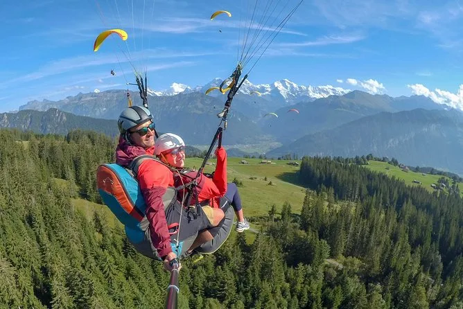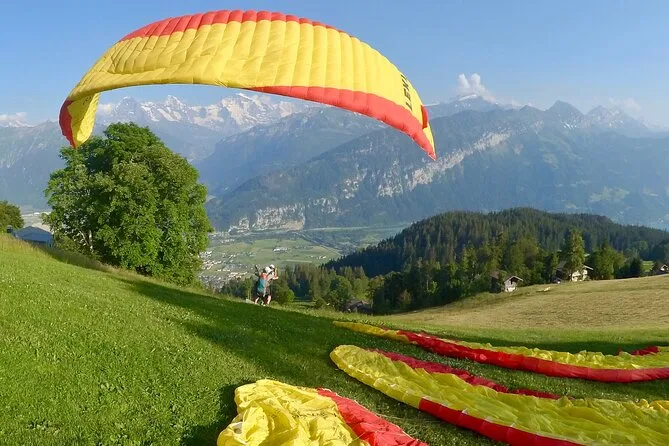 Your day includes pickup in Interlaken, transport up to Beatenberg in a small group van, a full safety briefing with your professional guide, use of all paragliding equipment needed for your tandem flight, and ends with landing right back in central Interlaken where you started.