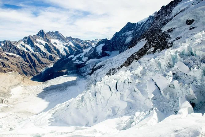 From Zurich to Jungfraujoch by train and cable car with glacier tunnels and mountain air