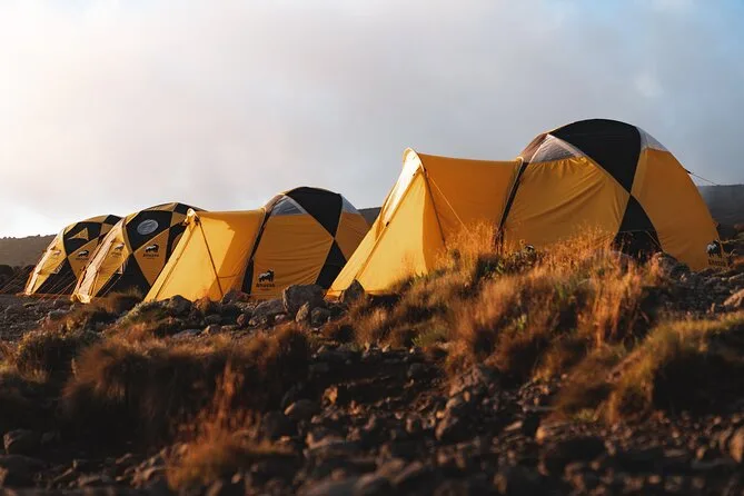 Your journey includes two nights at Aishi Machame Hotel (before and after trekking), airport pickup and drop-off at JRO airport, all ground transport between points along your route, all park entry fees for Mount Kilimanjaro itself, professional guides certified in wilderness first response (they really do check up on you!), porters who carry group equipment plus set up North Face VE-25 tents each night (two people per tent), daily meals cooked fresh—including options for vegetarian or special diets—and drinks like tea or coffee at camp. Oxygen tanks and medical kits travel with you too for safety checks throughout your climb.