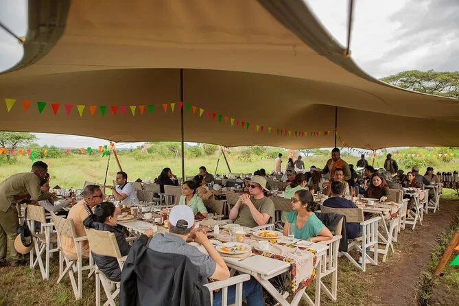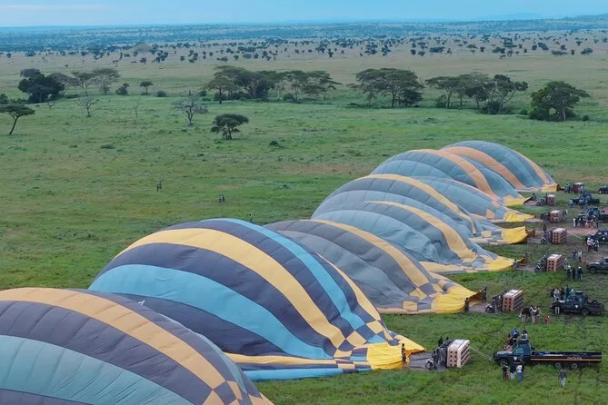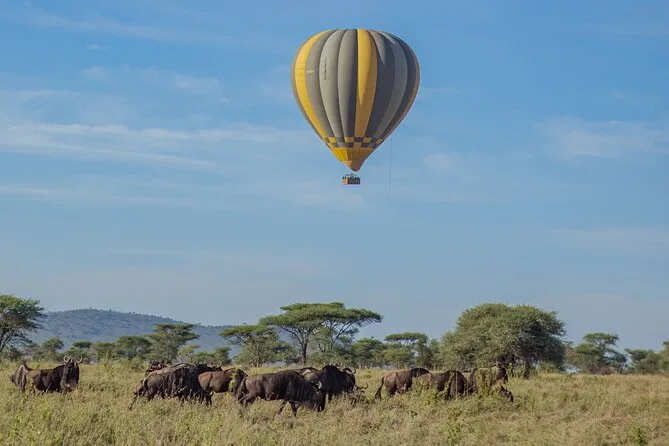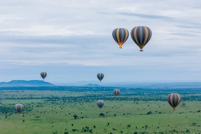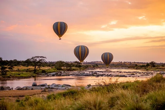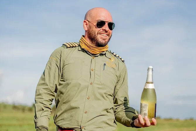You’ll start before sunrise with hot drinks at the launch site, then float over Serengeti’s wildlife as dawn breaks—coffee in hand—with your local pilot guiding you to hidden animals below. After landing, celebrate with champagne and a bush breakfast under open skies before heading back to your safari or lodge.