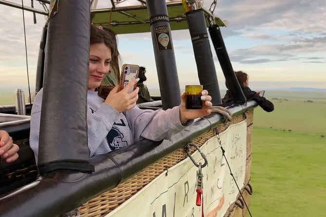 There was this moment when he poured us coffee mid-flight — yes, actual coffee in the sky — and I remember thinking: this is probably the only time I’ll ever drink coffee while floating over wildebeest herds. The landing was softer than I expected (my heart still thumped), and then suddenly we were on the ground again, laughing about our “balloon legs.” Someone popped open champagne (apparently that’s tradition), and it tasted extra sharp in the morning air.