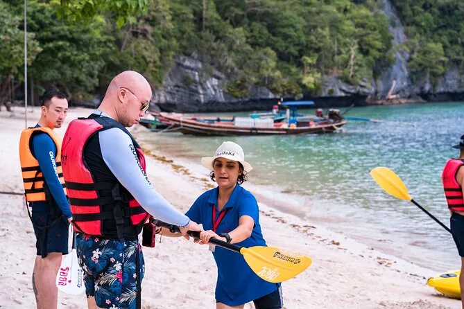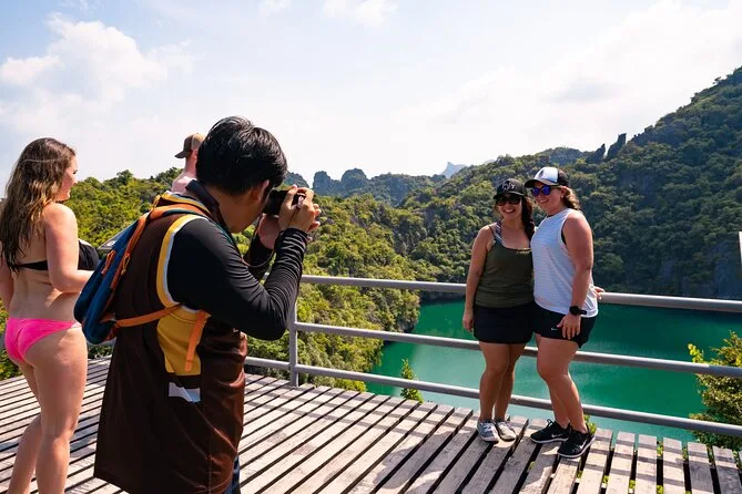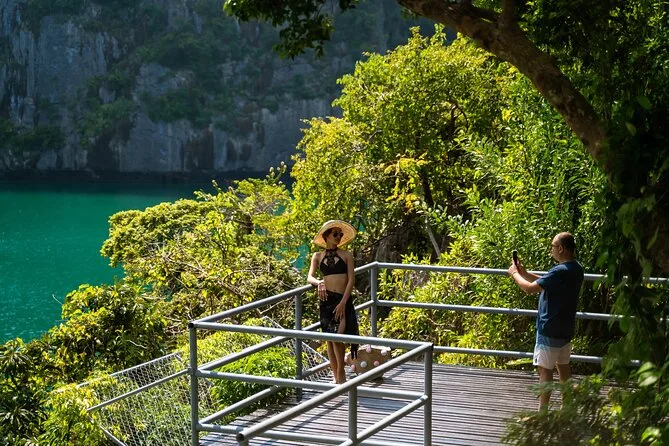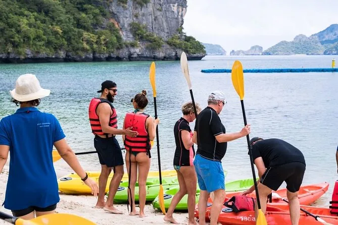 The tour includes snorkeling at Koh Wao, kayaking at Koh Mae Ko, a viewpoint hike over the Emerald Lagoon, and beach time with lunch on Koh Phaluai.
