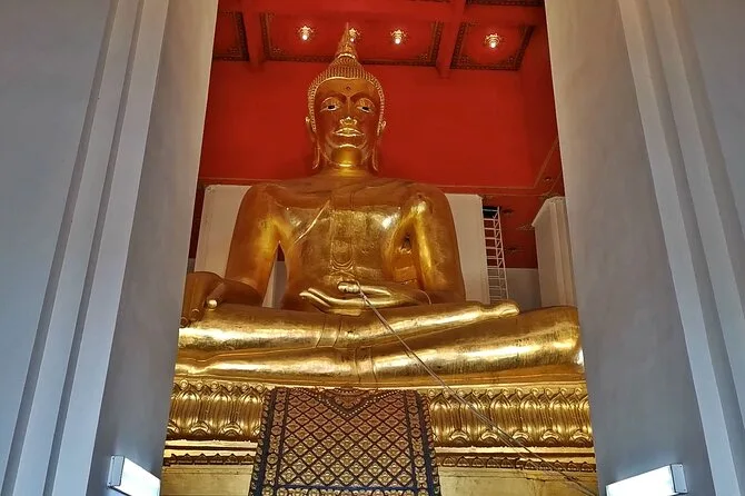 The tour visits Wat Mahathat, Wat Phra Si Sanphet, Phra Mongkhon Bophit, and Wat Lokayasutharam.