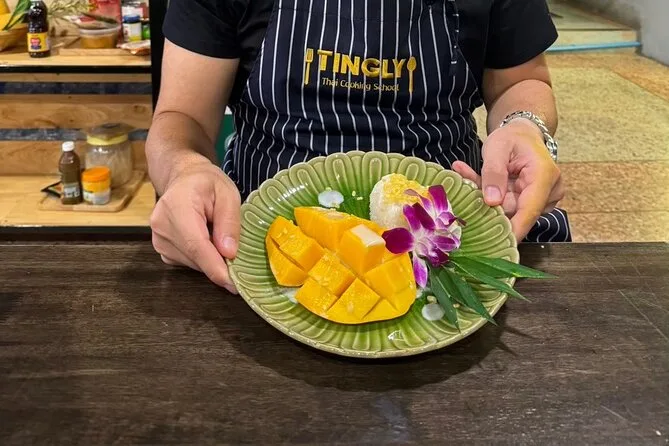 Your afternoon includes hands-on instruction at Tingly Thai Cooking School in Chiang Mai with all ingredients provided for each dish. You’ll get expert guidance from local teachers as you prepare Tom Yum soup, Pad Thai noodles, chicken curry (green, red or panaeng depending on day), and finish with mango sticky rice — then enjoy everything as your meal before heading out into the evening air.