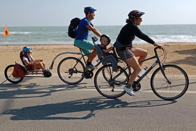 Bikes, helmets, water bottles are provided; bring sunscreen and comfortable clothes.
