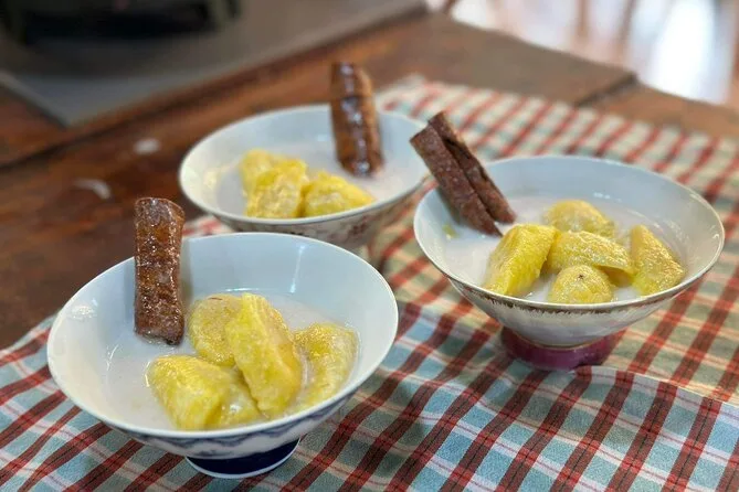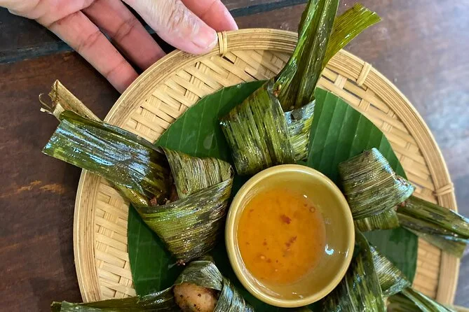 I didn’t expect to get so into shaping those sticky rice balls for dessert — they kept slipping away from me and ended up all sorts of lumpy, but nobody cared. Lunch was what we cooked ourselves: deep-fried pork wrapped with lemongrass (still dreaming about that crunch), fish curry with coconut milk from the market, pomelo salad bright with lime and chili oil. We ate outside while cicadas buzzed somewhere overhead and Wandee answered every question we threw at her. I left full but also sort of lighter — maybe it was the garden air or just laughing at myself trying to use a mortar properly.