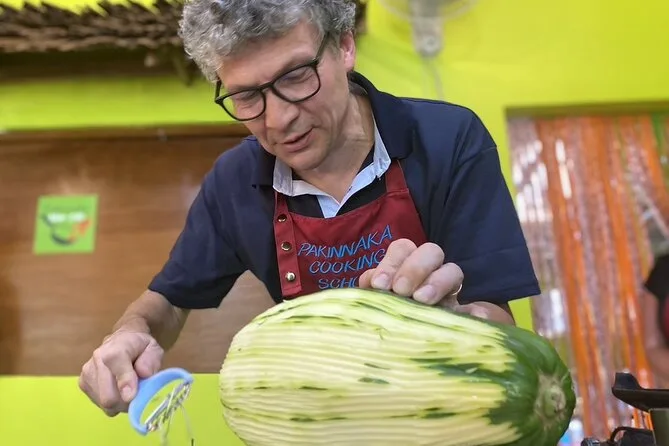 Your day includes round-trip hotel pickup in an air-conditioned vehicle from anywhere in Khaolak, a guided stroll through the local fresh market with Chef Wandee herself (she knows everyone), all ingredients for your chosen menu including seafood or veggie options if needed, your own equipped cooking station under a bamboo hut in her garden kitchen, bottled water throughout the experience and a full lunch made by your own hands before heading back relaxed and well-fed.