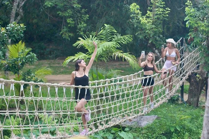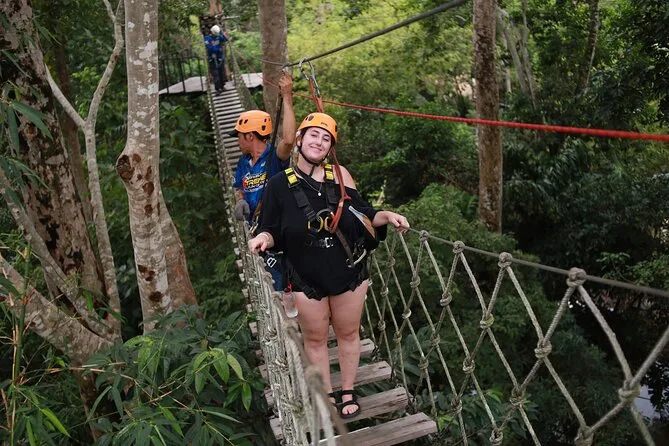 The longest zipline was wild — 300 meters felt longer when you’re up there. I tried to spot the sea between the trees but mostly saw flashes of bright flowers and a couple of monkeys watching us (or maybe judging). The sky bridges bounced under our feet, which made my knees wobble more than I’d admit. There were families with kids on the easier program too; everyone seemed to find their own pace. Lek kept checking if we were okay, cracking jokes about “Thai coffee making you brave.”