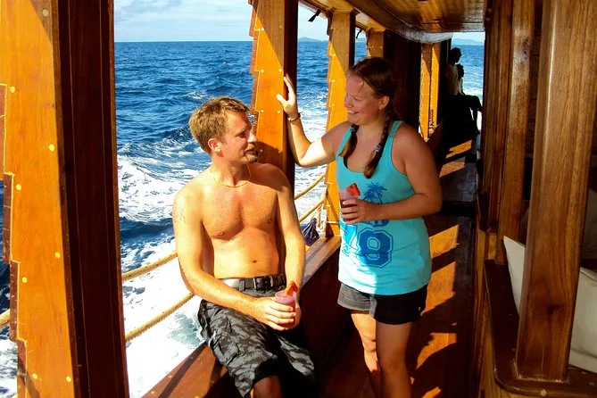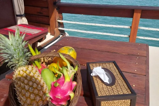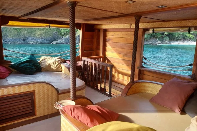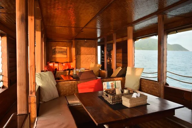Your day includes hotel pickup and return by air-conditioned van from Phuket’s main tourist areas, breakfast with bread and yogurt options to start things off right, free-flowing snacks like pancakes and fruit while cruising through Phang Nga Bay with your local guide. You’ll enjoy a Thai buffet lunch onboard (with vegetarian choices if needed), plenty of lounging space with soft pillows on deck for relaxing between swims at Koh Hong lagoon or other stops before heading back in the evening.