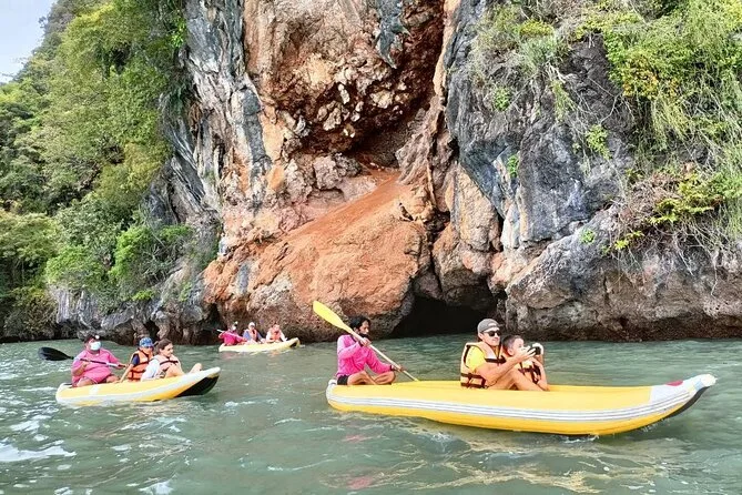 The tour includes sea cave canoeing at Panak and Hong Islands, sightseeing at James Bond Island, swimming and paddle boarding at Nakae Island.