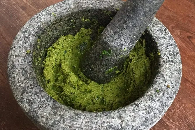 You’ll make Mango Sticky Rice, Green Curry (including homemade curry paste), Panang Curry (contains peanuts), and Pad Thai.