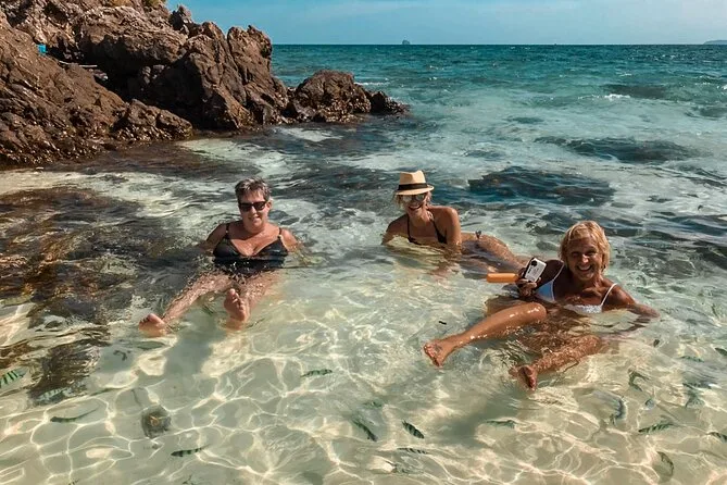 Last stop: Koh Rang Yai. By now, the sun was lower and everything looked golden. They handed out cold watermelon slices and sodas while we lounged on beanbags by the water. Some folks stayed for sunset; we headed back early since clouds were rolling in. The ride home was smooth—just that soft engine hum and a bit of sea breeze to end the day.