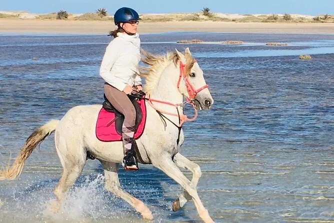 Your experience includes use of helmets for safety throughout your horseback or camel ride; you’ll be guided by local instructors as you travel through Djerba’s villages and along sandy tracks to reach the lagoon before returning together at journey’s end.