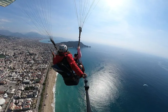 Your day includes hotel pickup from Alanya or nearby areas, all safety equipment provided by your professional pilot, a tandem paragliding flight from 700 meters above Cleopatra Beach lasting around 20 minutes, full insurance coverage throughout your experience, and drop-off after landing softly on the sand.