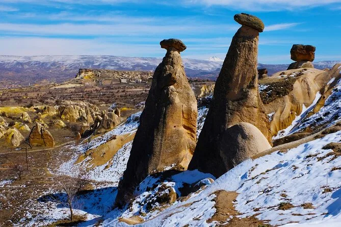 The tour typically covers a full day visiting highlights like Göreme Open-Air Museum, Devrent Valley, Monks Valley, Avanos town, and Özkonak Underground City.