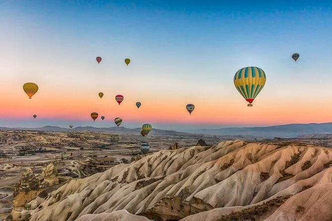 The tour begins early before sunrise with hotel pickup to catch dawn light over Cappadocia.
