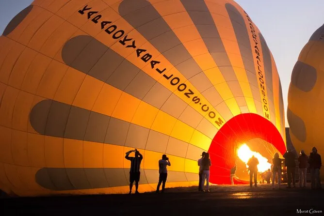 The field smelled faintly of grass and propane, and honestly, my hands were cold until we got close to the balloon’s burners. I’d never realized how loud those things are—every burst made me jump a little. Climbing into the basket was awkward (I’m not tall), but nobody cared; everyone was too busy looking at the horizon turning pink behind those wild rock shapes. Murat gave us a safety briefing, but I barely heard it because I was distracted by how quiet everything suddenly got once we lifted off. You could hear dogs barking somewhere far below and nothing else.
