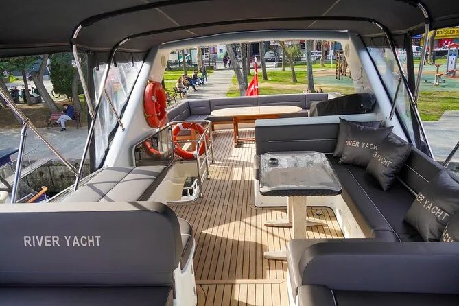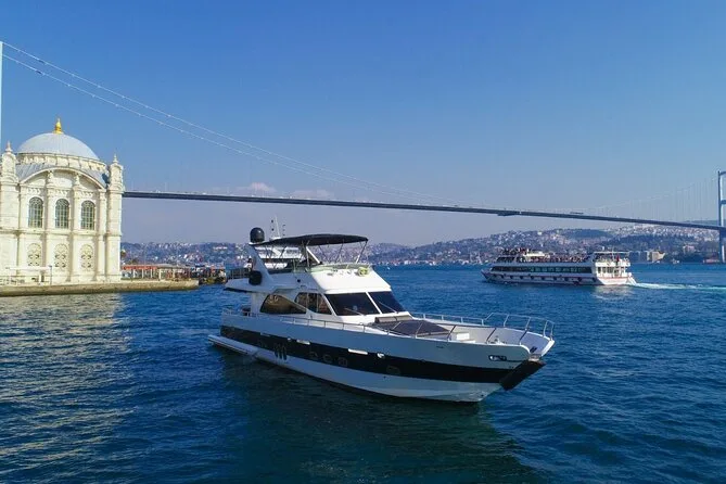 Your day includes two hours aboard a luxury private yacht cruising Istanbul’s Bosphorus Strait with a professional local guide sharing stories as you pass iconic sites. Freshly prepared seasonal fruits, delicious cookies and baklava are served alongside complimentary drinks—homemade lemonade with mint, tea or coffee—and there’s a restroom onboard so you can relax fully until return to shore.