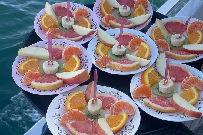 You’ll be offered baklava, cookies, fresh fruit plate, homemade lemonade with mint, tea, coffee, and water onboard.