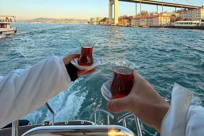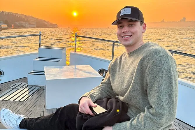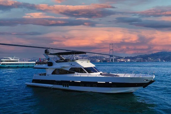 Your evening includes pickup from selected areas in Istanbul and return transfers after your Bosphorus sunset cruise. Onboard you’ll have complimentary drinks—homemade lemonade with mint, tea or coffee—and snacks like baklava, cookies and fresh seasonal fruit. A professional local guide shares stories as you sail past palaces and landmarks on a luxury yacht equipped with restrooms for comfort throughout your two-hour journey.