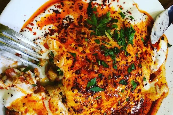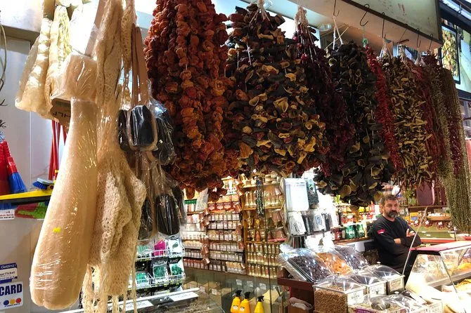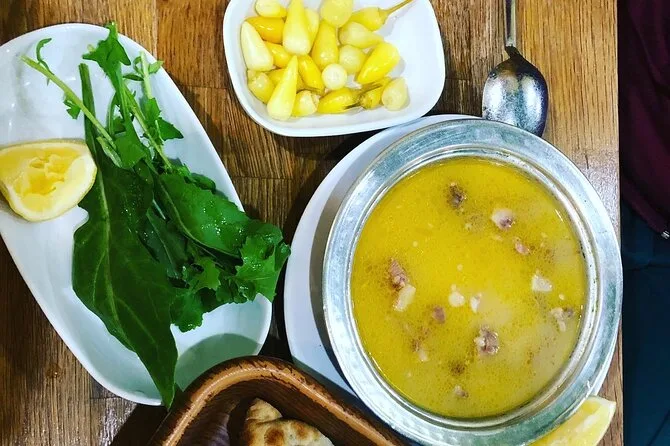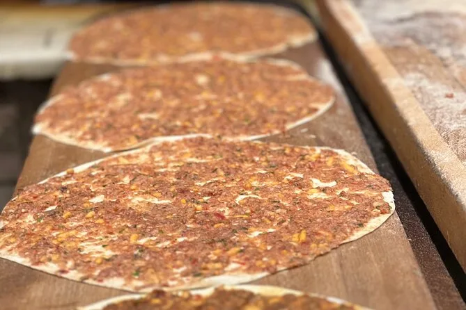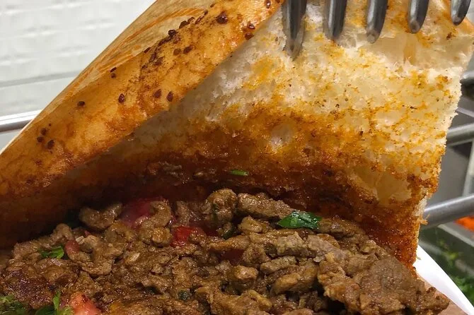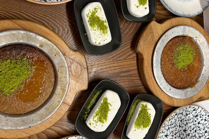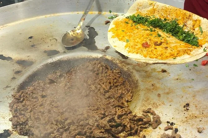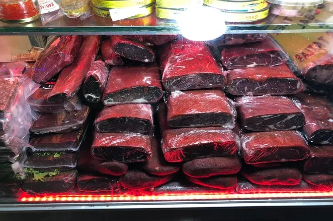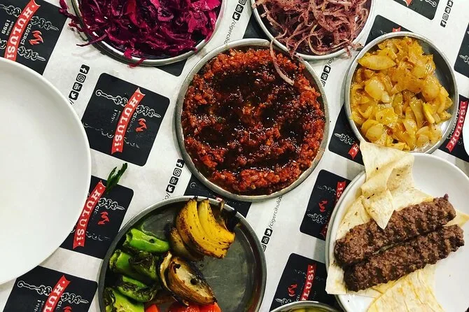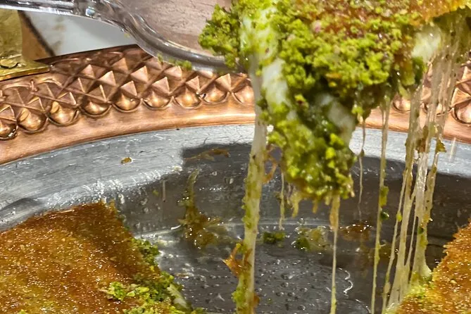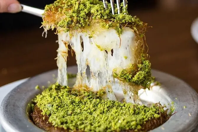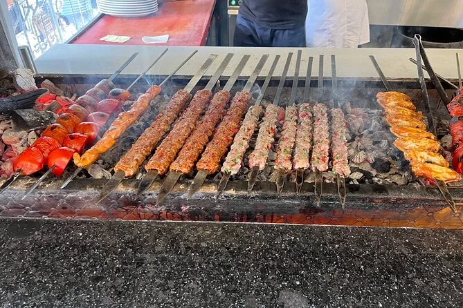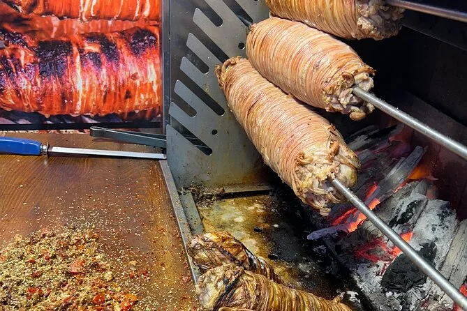 You’ll try stuffed mussels, pastrami, pickled vegetables, cheeses, olives, halva, soups, stuffed wine leaves, kokoreç, tantuni, lahmacun, kebaps, kunefe dessert and goat milk ice cream.
