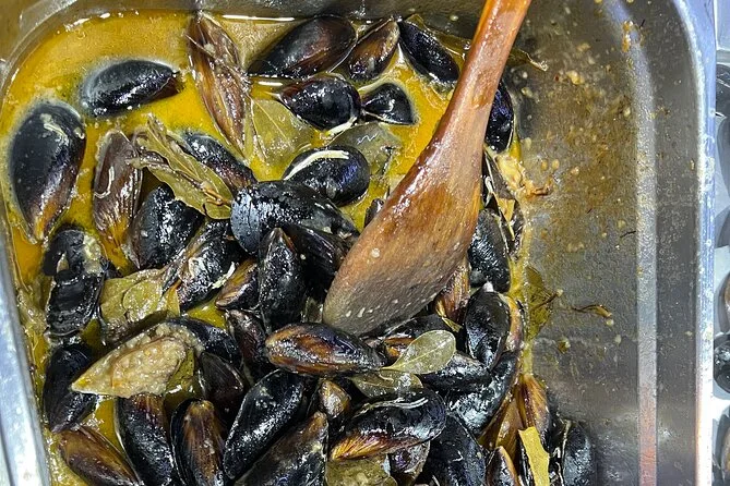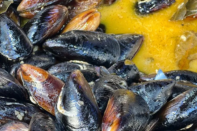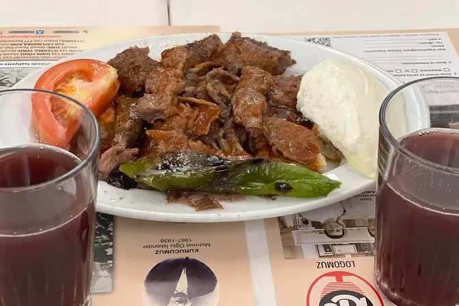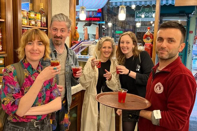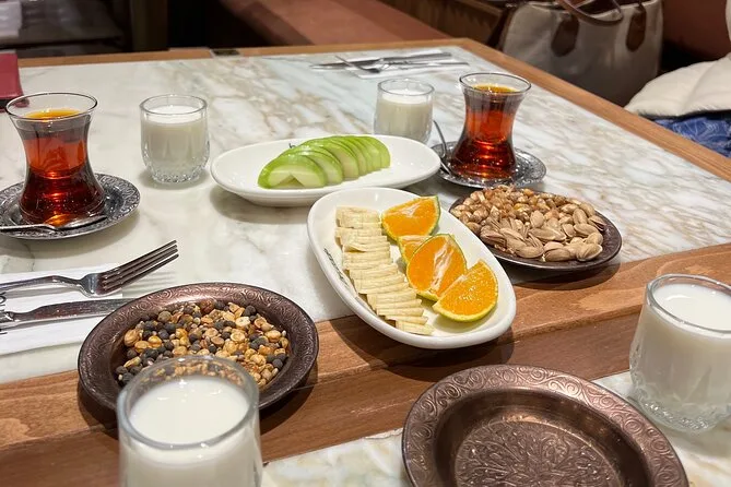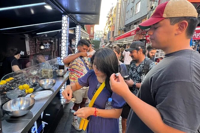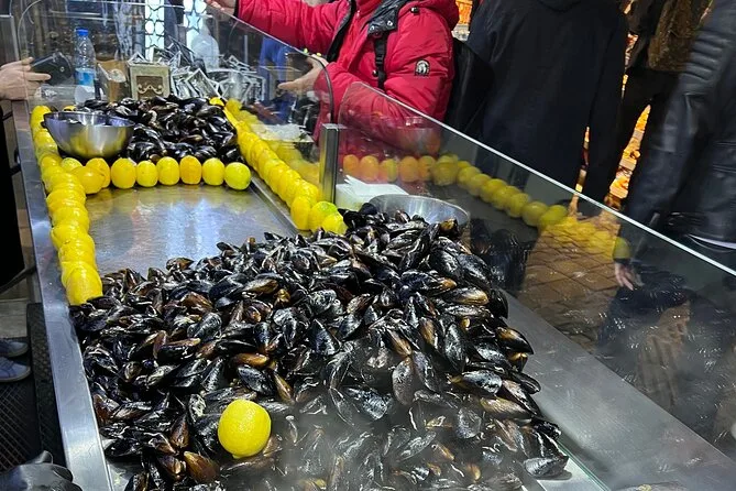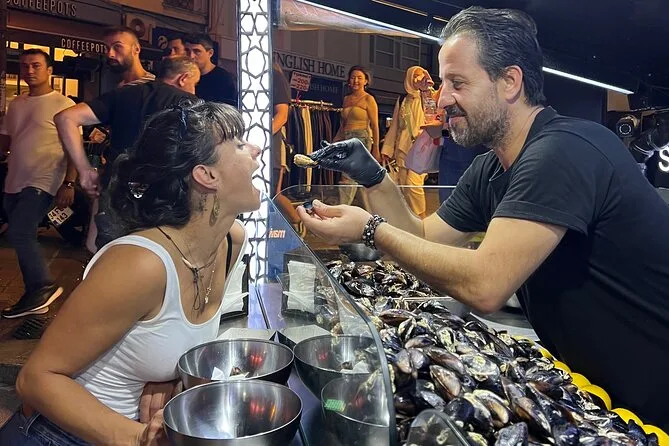 Your evening includes all tastings at nine different stops—stuffed mussels right from street vendors in Kadikoy’s market lanes; samples of pastrami, olives and cheeses; four non-alcoholic drinks along with Turkish tea or coffee; two scenic public ferry rides across the Bosphorus between Europe and Asia; dinner featuring kebaps and meze dips at a traditional lokanta; kunefe dessert paired with goat milk ice cream; plus tipping at restaurants—all led by a knowledgeable local guide who shares stories along the way. Return to your hotel isn’t included but your guide can help arrange it if needed.